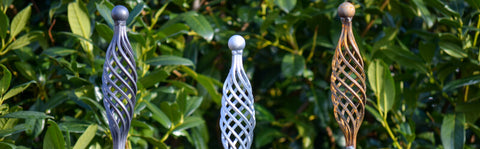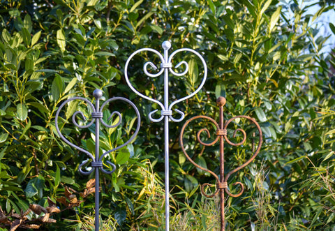 Onze metalen tuinstekers worden met liefde met de hand gesmeed. Elk stuk is daardoor een verfijnd en uniek exemplaar. De stekers zijn vervaardigd uit hoogwaardig metaal en onderscheiden zich door hun bijzondere duurzaamheid. Ze zijn weerbestendig en bestand tegen alle weersomstandigheden, zodat u jarenlang plezier heeft van uw plantenstekers – die altijd een tijdloze blikvanger zijn.