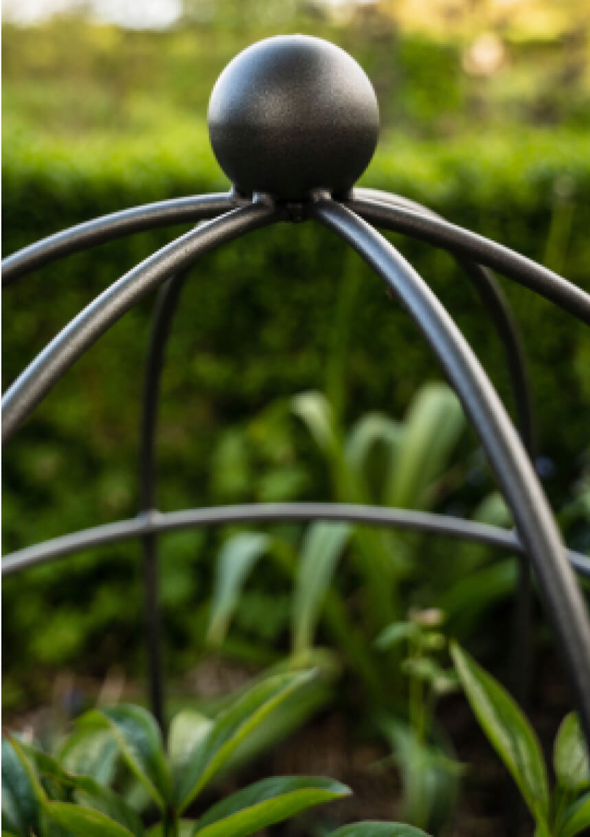 Alle rankobelisken van ELEO Tuin zijn vervaardigd uit massief metaal en worden in één stuk bij u thuis afgeleverd. Montage is daarom niet nodig. Voor een veilige stand zorgen bevestigingslussen aan de onderzijde. Met behulp van draadbouten wordt de rankobelisk in de tuin verankerd.