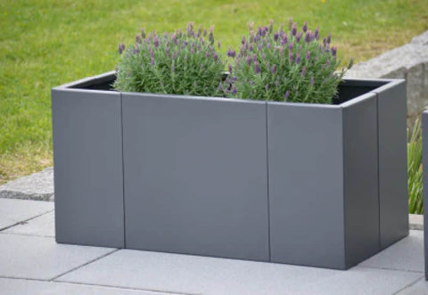 Kleurrijk bloeiende vaste planten zoals flox, lavendel of pioenrozen komen prachtig tot hun recht in een poedergecoate plantenbak in antraciet. Nieuw in ons assortiment zijn onze verhoogde plantenbakken met zichtscherm. Deze hebben een geïntegreerde privacywand, waarbij u zelf kunt kiezen voor een gedeeltelijk of volledig motief. Er zijn verschillende moderne designs beschikbaar – vind uw favoriet!
