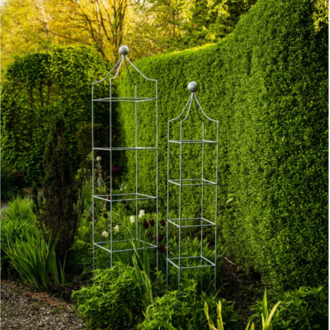 In de zomermaanden vormt een rozenobelisk de ideale basis voor uw klimrozen, waarbij de weelderige bloemen centraal staan. In de herfst- en wintermaanden wordt de onbeplante obelisk een stijlvol designelement en blikvanger in uw tuin.