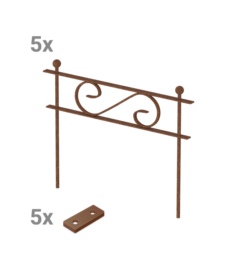 Bestel onze populaire perkhekje "Balerna" in een voordelige, praktische set! De set bevat vijf hekelementen – elk element is 52 cm breed en 40,3 cm hoog. Bij onze perkhekje "Balerna" zorgen de sierlijke S-decoraties voor een decoratieve blikvanger. De losse hekelementen kunnen eenvoudig met metalen platen aan elkaar worden geschroefd. De coating kunt u naar wens kiezen.