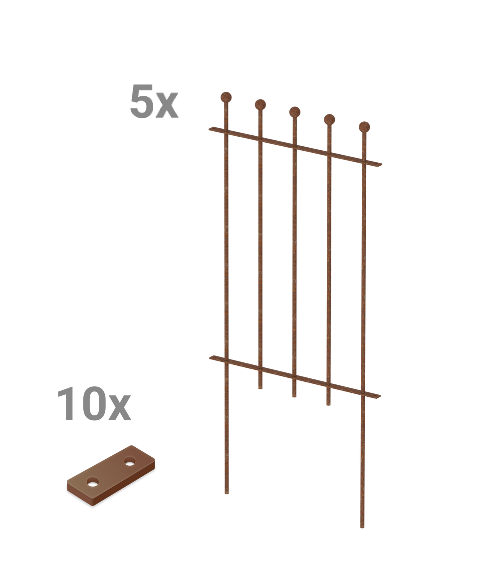 Onze sierhek worden volledig voorgemonteerd geleverd – voor een bijzonder eenvoudige en snelle montage ter plaatse. De bevestiging in de grond voert u zelf uit door de hekelementen ongeveer 20 cm diep in de aarde te steken.