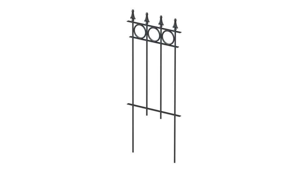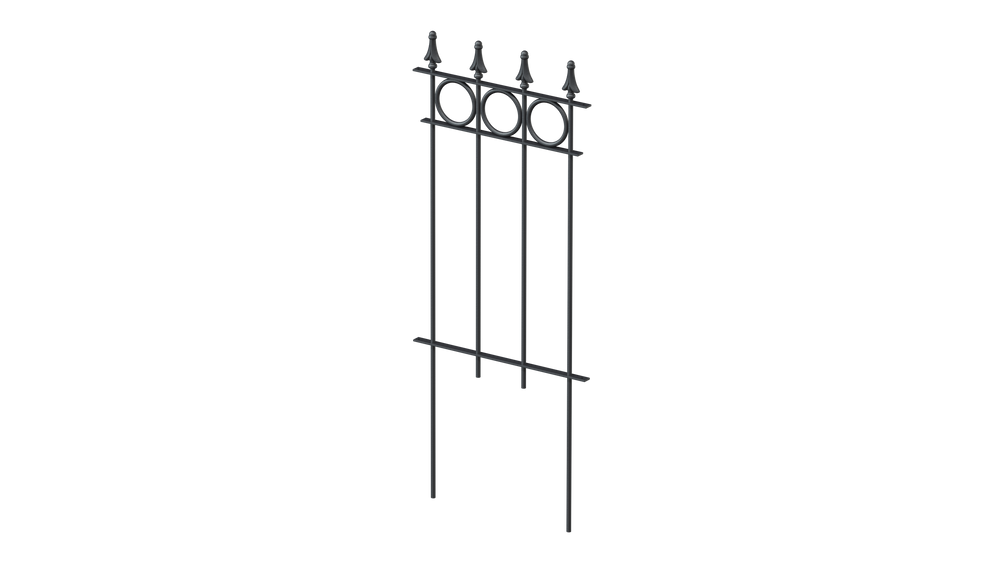 Met zijn cirkelvormige ornamenten en de decoratieve sierpunt in dennenappelvorm omlijst ons sierhek "Belluno" uw bloemenperken op stijlvolle wijze. "Belluno" is, net als ons gelijknamige hekmodel, met de hand vervaardigd uit weerbestendig metaal. Elk sierhekelement is 44,1 cm breed en 105 cm hoog (inclusief punt en grondverankering) en kan dankzij een verbindingsplaat en schroeven moeiteloos met andere elementen worden verbonden. Kies zelf de coating en geef uw "Belluno" zo een heel persoonlijke uitstraling!