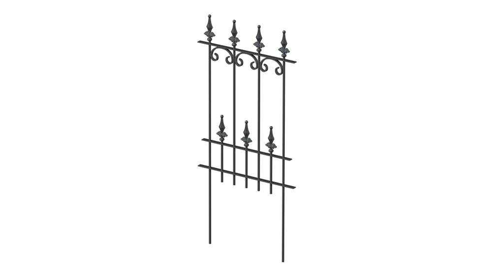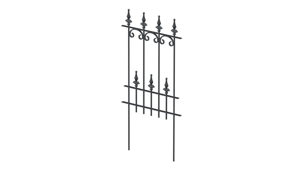 Ons populaire hekmodel "Lucca" is nu ook verkrijgbaar als sierhek! Met de klassieke bollelie als sierpunt en zijn kunstzinnige C-decoraties geeft het uw tuin een elegante uitstraling. Elk element van hoogwaardig metaal is 50 cm breed en 105 cm hoog – inclusief punt en grondverankering. "Lucca" kan snel en eenvoudig in de grond worden gestoken; de losse elementen worden met een stabiele metalen verbinding en schroeven stevig aan elkaar bevestigd.